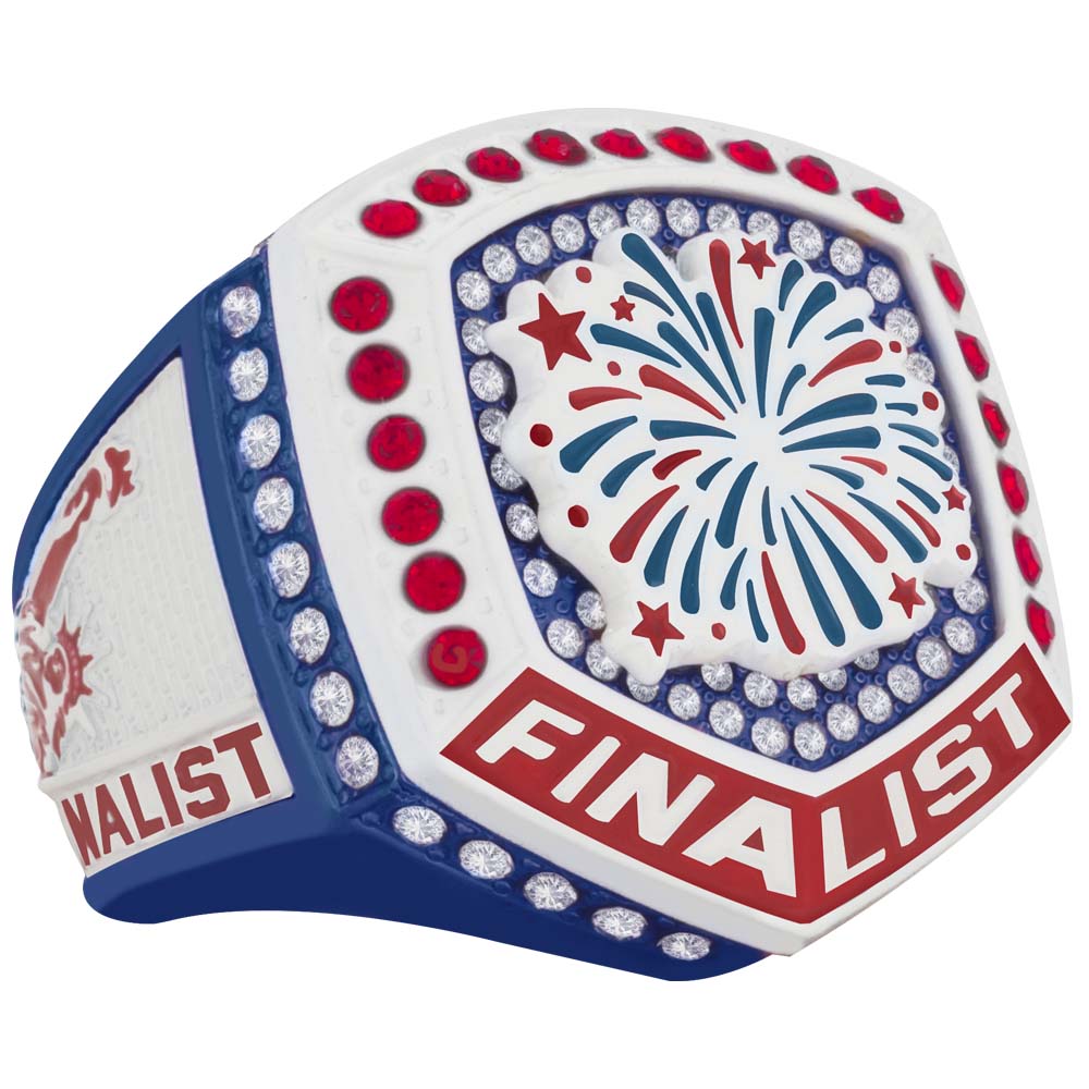 4th Of July rings are made with an edge to edge die cut molds along with hand placed stone embellishments. Presented in a felt drawstring bag marked with the finger size on the back.
