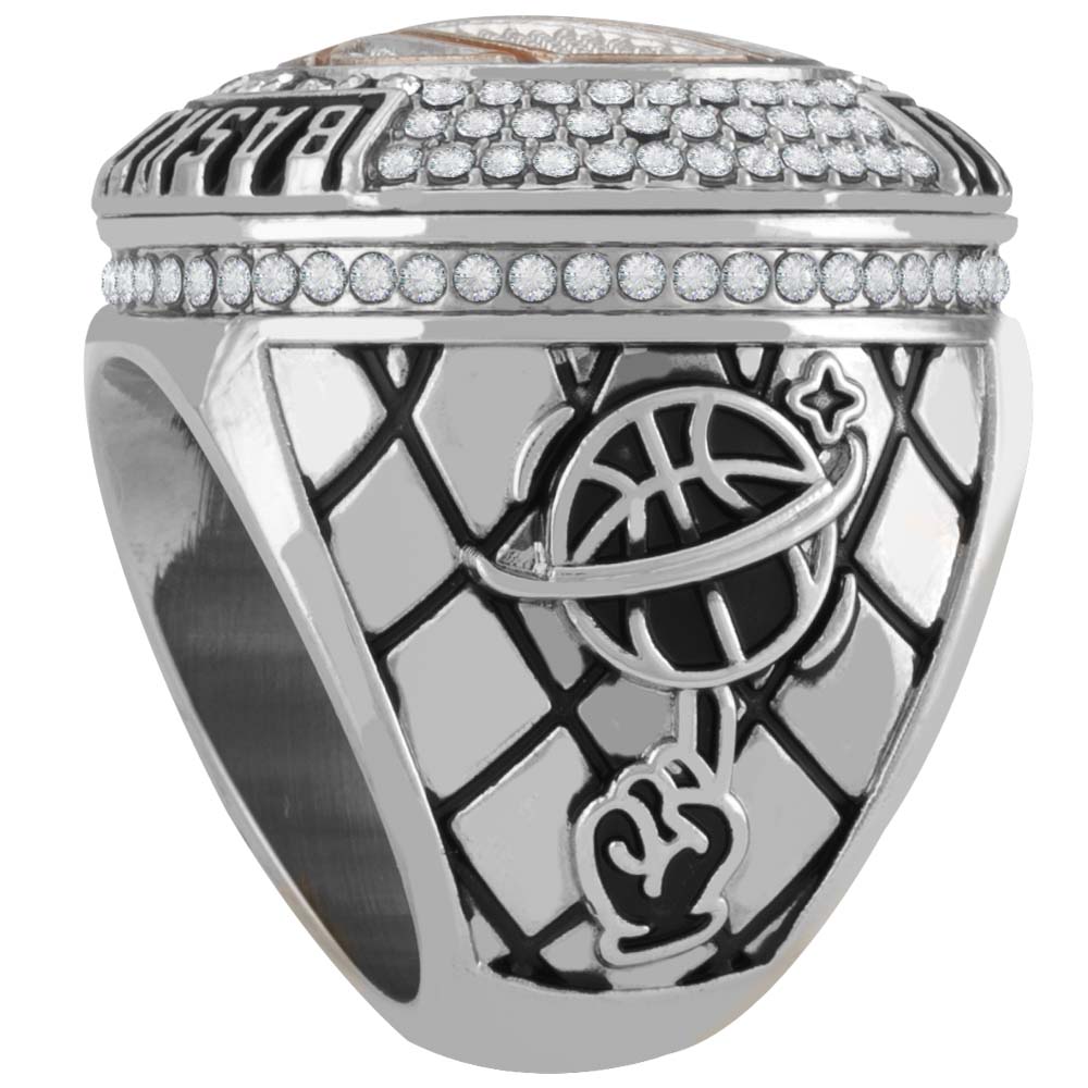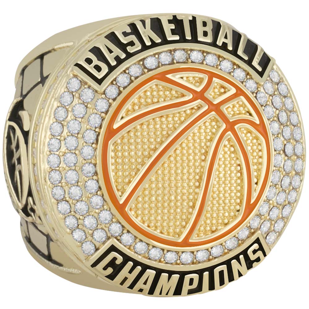 Basketball Championship Ring, Sports Awards,Available in size 10 & 12. Presented in a felt drawstring bag marked with the finger size on the back.