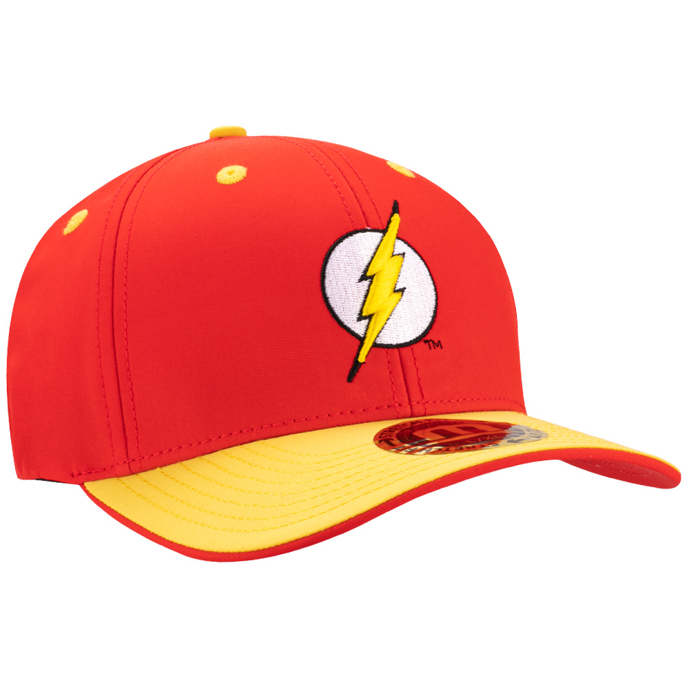 Stretch-Fit cap with slightly curved visor and red crown / yellow visor. Raised front embroidered Flash logo. Stretch Fit fits most head sizes. Available in youth (M-L) and adult (L-XL).