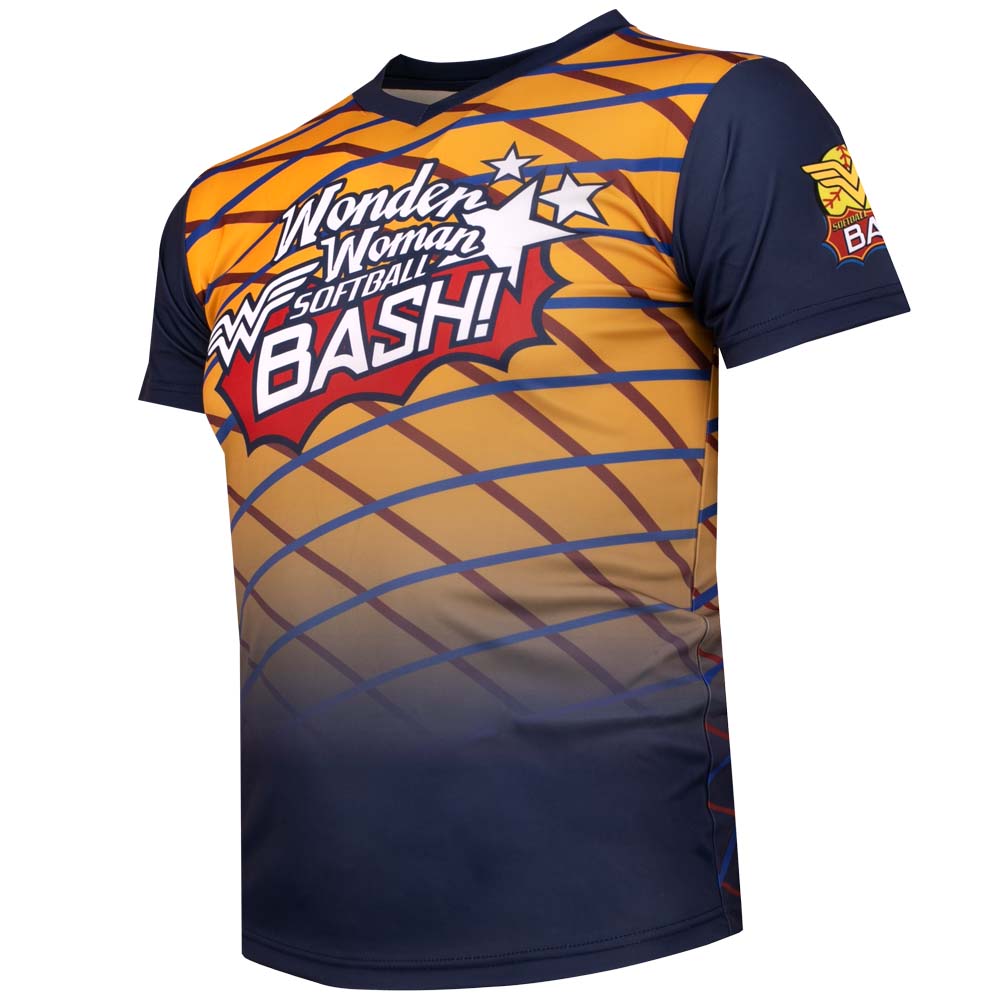 Fully sublimated performance fabric, dri-fit material. Wonder Woman front logo. Optional Tournament logo on the sleeve.