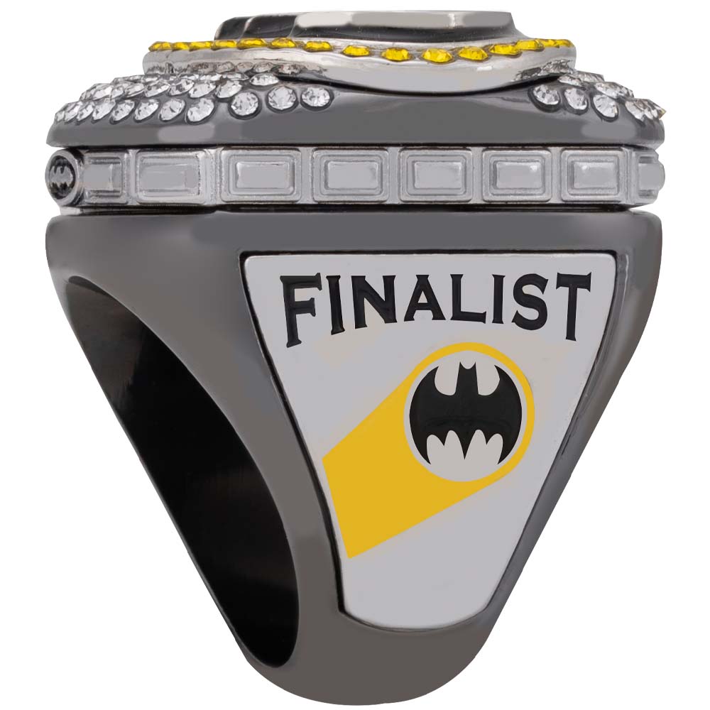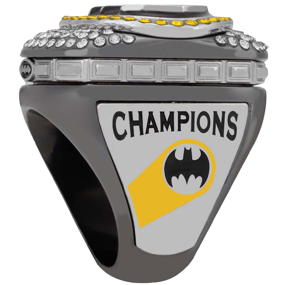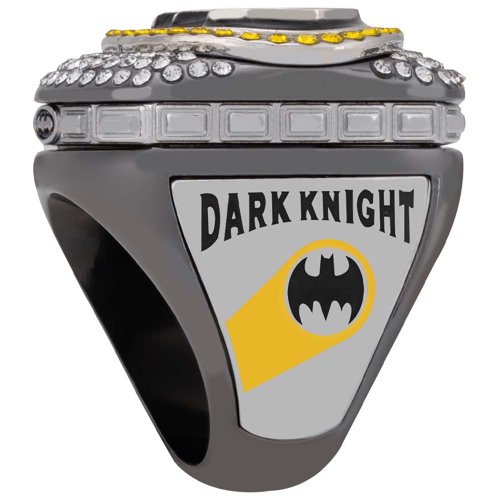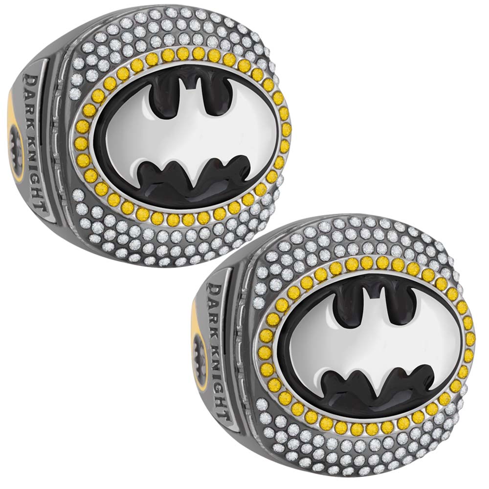 Batman rings are made with an edge to edge die cut molds along with hand placed stone embellishments. Presented in a felt drawstring bag marked with the finger size on the back.
