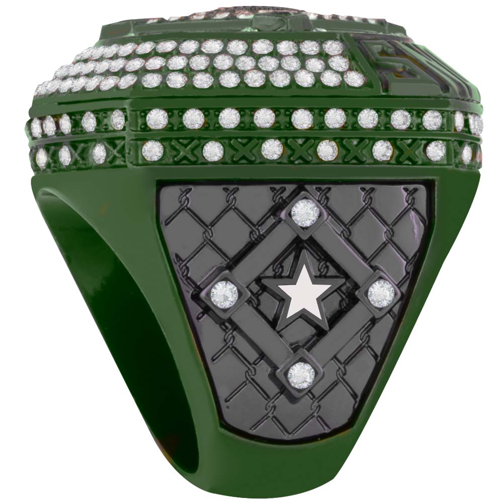 Diamond Series rings are made with an edge to edge die cut molds along with hand placed stone embellishments. Available in a variety of colors to fit your event! Presented in a felt drawstring bag marked with the finger size on the back.